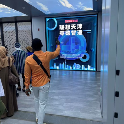 在联想讲解员的引导下,留学生们现场观摩了联想接近无人化的智能制造车间,完全无人化调度的仓储系统,以及联想的零碳制造技术。在智能制造互动体验空间,了解到联想全球供应链的全貌,惊叹于联想集团的管理能力与卓越的技术成果。